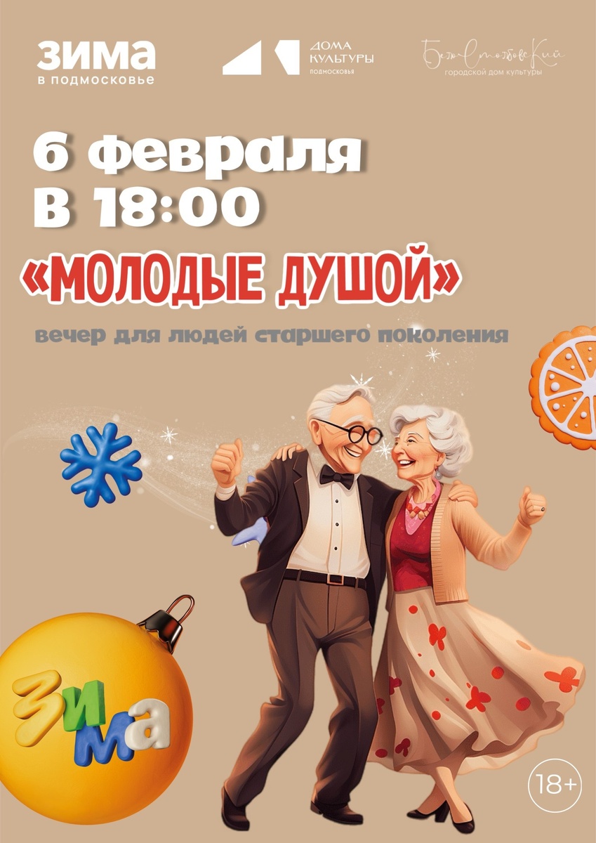 ✨ Приглашаем вас на вечер встречи клуба «Молодые душой»! ✨ Давайте вместе проведём незабываемый вечер, наполненный: ❄️душевными разговорами; ❄️задорной музыкой; ❄️весёлыми танцами. 🚫 Возраст: 18+ 📆 06.02.2026🕒18:00 🏢 Белостолбовский городской Дом культуры (ГДК) 📍 г.о.Домодедово, мкрн.Белые Cтолбы, ул. Авенариуса стр. 1а ✅ Мероприятия Домодедово https://dzen.ru/id/66f10385cc4c5a16f7b5fb02 http://vk.com/domodedovo_events http://dzen.ru/domodedovo_events