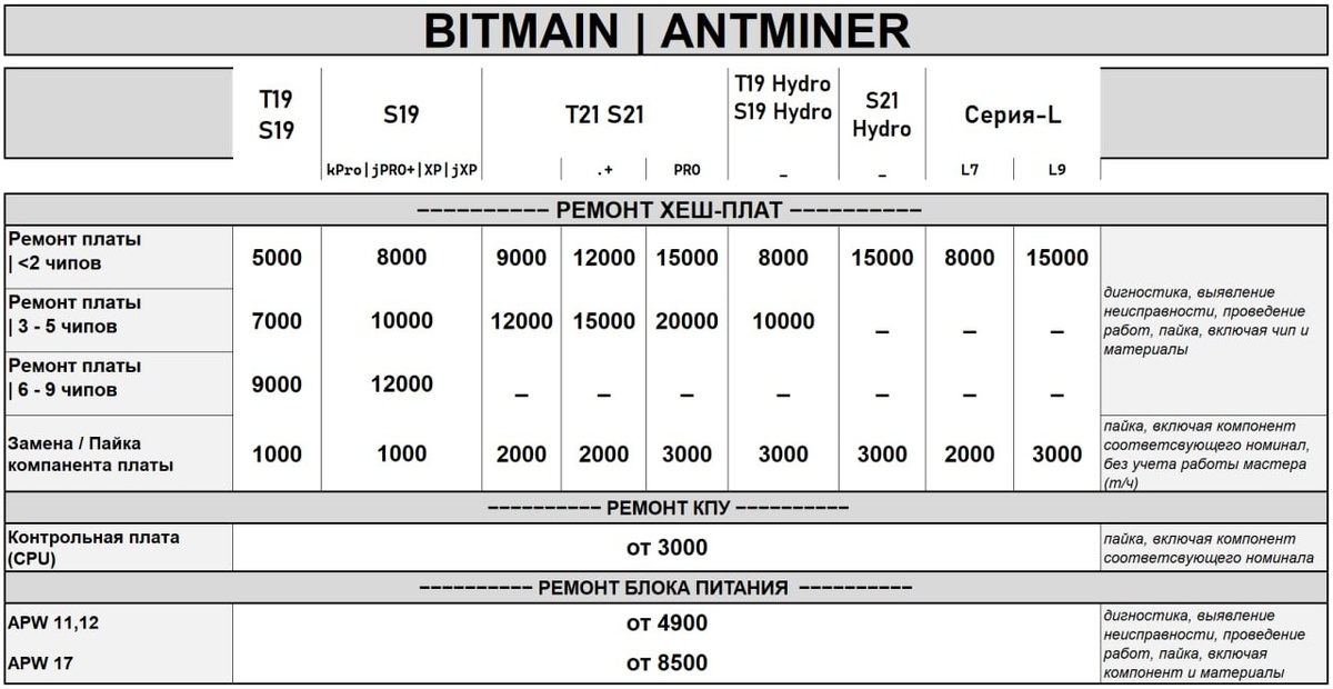❗️БЕСПЛАТНО ПРОКОНСУЛЬТИРУЕМ ПО ВАШЕЙ НЕИСПРАВНОСТИ. ✅ замена чипов - от 5000р ✅ замена терм.пасты - от 2000р ✅ ремонт КПУ - от 3000р ✅ремонт КПУ - от 3000р ✅ ремонт БП - от 3000р ✅ пайка э/к - от 1000р ➡️ СВЯЗАТЬСЯ ПО РЕМОНТУ #МАЙНИНГ - Публикуем прайсы на НОВОЕ и Б/У оборудование для майнинга в наличии ОФИСА и доступное к предзаказу из КИТАЯ. #НОВОСТИ - Делимся актуальными новостями в сфере майнинга криптовалют в России и мире, главные новости и тренды определяющие будущее индустрии майнинга - которые стоит учитывать. #VLOG - Делаем для Вас обзорный КОНТЕНТ оборудования, ежедневные и еженедельные дайджесты , ключевые тесты и гайды.