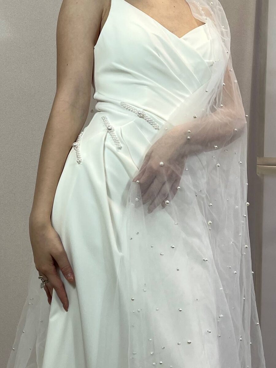 компромиссов. 🥀 💥Четкий силуэт брительки + воздушность юбки = мой идеал. 💥Любимая деталь: мерцающая вспышка из страз на талии. Как личная подпись в образе. 💥И шлейф - ровно настолько, чтобы было торжественно, но удобно танцевать до утра. Это платье — про уверенную женственность. Без лишнего, но с характером.🌺