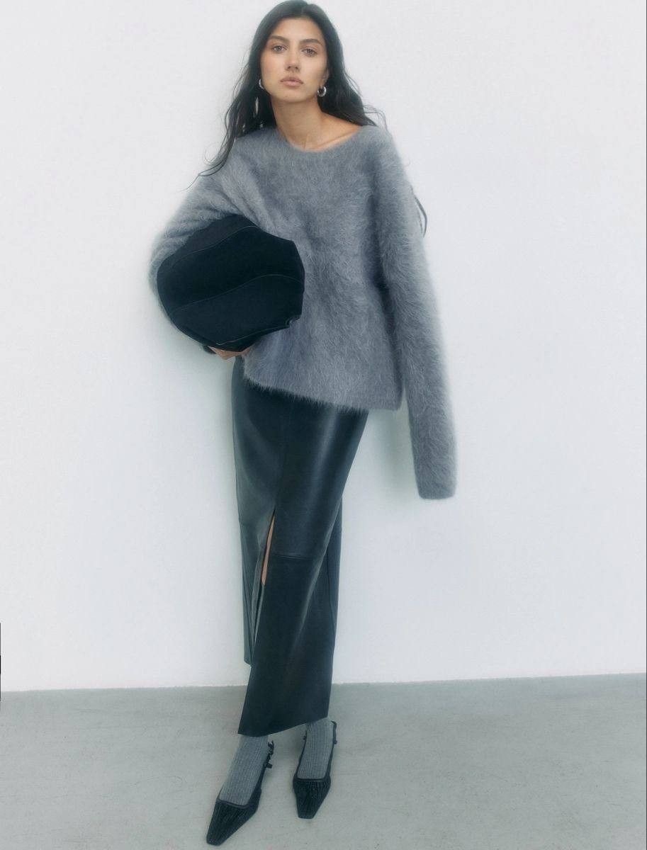 Когда в образе есть разница между более объемной и, наоборот, более узкой частью, силуэт становится читаемым: появляется талия, пропорции выглядят понятными и сбалансированными.