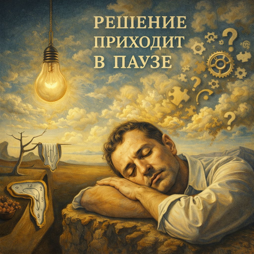 Главный вывод ваших материалов звучит просто: самые успешные решения приходят не “самым умным”, а тем, кто умеет управлять своими состояниями. Сначала — фокус, потом — отпускание. Постоянный фокус ведёт к выгоранию, постоянное расслабление — к отсутствию материала для обработки. Работает чередование.