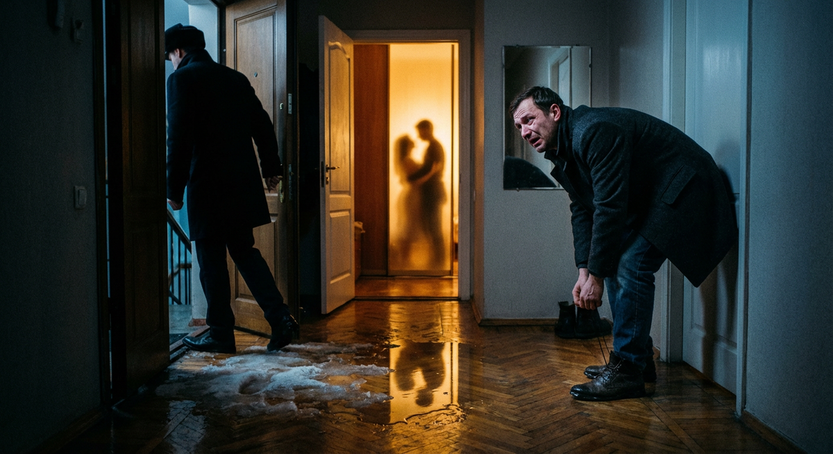 На их этаже было темно и тихо. Он вставил ключ в замок, повернул — аккуратно, чтобы не скрипнуло. Дверь открылась бесшумно. Он поставил чемодан в прихожей, снял ботинки. Из спальни доносился свет и… голос. Не телевизора. Её голос. Она о чём-то говорила. Тихим, довольным, счастливым тоном, которого он не слышал от неё, кажется, сто лет.