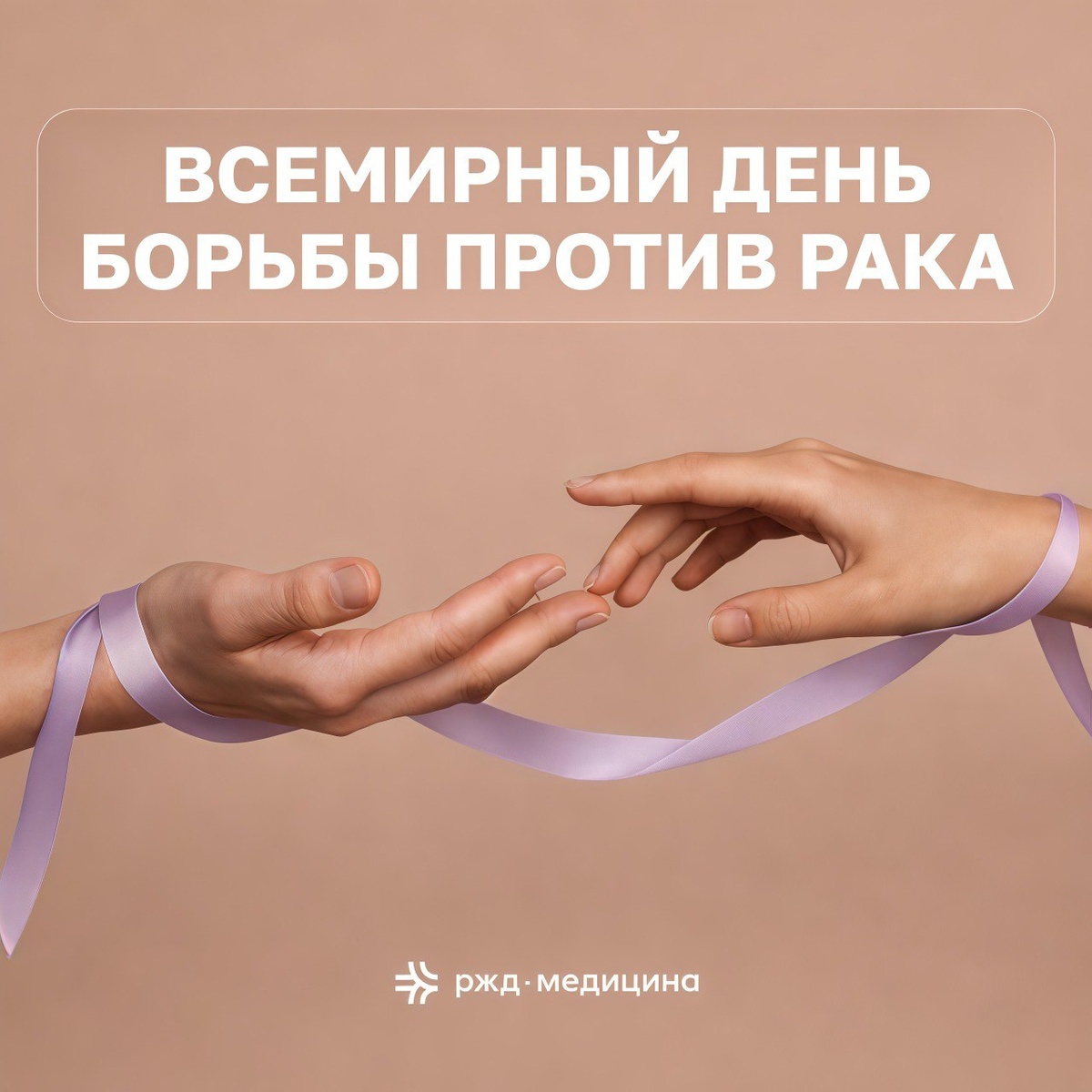 День, когда весь мир говорит на одном языке — языке надежды, поддержки и борьбы Мы в «РЖД-Медицина» верим, что главное оружие в этой борьбе — это не страх, а знания и действия. Поэтому сегодня напоминаем о трех простых, но самых важных шагах: ✅Действуйте! Регулярные чекапы — это не про страх, а про осознанность и умный подход к жизни. И помните, ранняя диагностика кратно увеличивает шансы на полную победу. ✅ Поддержите близких! Внимание, участие и простое «я рядом» — иногда значат не меньше, чем самые эффективные лекарства. ✅ Говорите! Онкология — болезнь, которую можно и нужно лечить. Разрушаем мифы вместе. Не ждите тревожных сигналов. Подарите себе уверенность в завтрашнем дне. В клиниках «РЖД-Медицина» мы создаём полный цикл заботы: от профилактического осмотра и высокоточной диагностики до составления персонального плана лечения с использованием современных методик👥