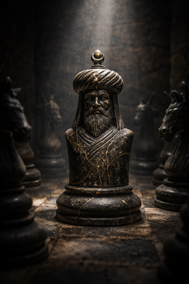 «Король — это не только тот, кто судит, но и тот, кто направляет острие меча. Когда Шах делает шаг вперед, сердца его воинов каменеют, а сердца врагов тают, ибо он ставит на кон свою сакральность».