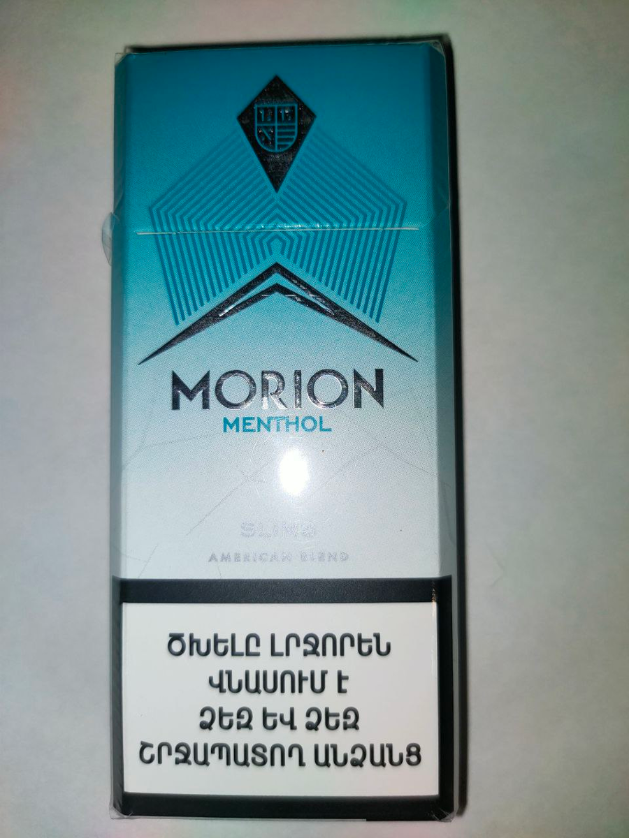 👋 Всем привет! 1️⃣ Сегодня поделюсь мнением о MORION menthol slim 100 — это мои первые ментоловые сигареты в таком формате. Пачка выглядит стильно и современно, со сглаженными углами — в руках ощущается приятно. Предупреждение на армянском языке, в целом всё смотрится аккуратно и «аппетитно». Сигарета горит плавно, тянется легко, несмотря на slim-формат.