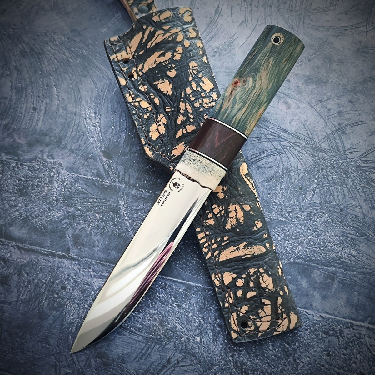 : Сталь Х12МФ Твёрдость стали 61-62 HRC Рукоять стаб. карельская берёза Вставка железное дерево Больстер рог лося Тип спусков линза (асиметрия) Общая длина 260 мм Длина клинка 140 мм Длина рукояти 120 мм Ширина клинка 28 мм Толщина клинка в обухе 4 мм Ножны в комплекте 🔥 Нож с кованым долом из высококачественной стали Х12МФ представляет собой образец мастерства и технологий, вобравший в себя лучшие традиции ножевого ремесла. Эта сталь известна своей способностью сохранять заточку, а также высокой стойкостью к коррозии, что делает её идеальным выбором для изготовления ножей, которые должны служить долго и эффективно. Твёрдость в диапазоне 61-62 HRC гарантирует, что клинок будет оставаться резким даже при интенсивном использовании, что делает его отличным инструментом как для профессионалов, так и для любителей. Рукоять, выполненная из карельской берёзы, не только придаёт ножу эстетическую привлекательность, но и обеспечивает удобство в использовании. 🏷 6 500₽ 👉 Заказать: t.me/matb