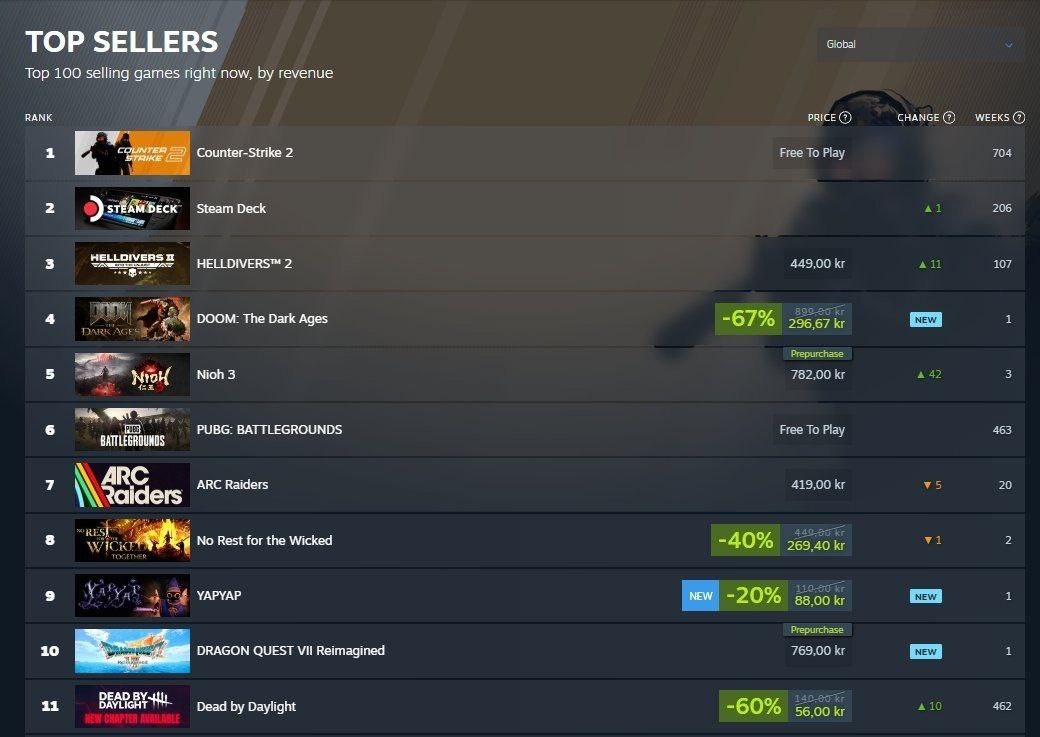 📈 Dead by Daylight заняла 11 место в глобальном топе продаж Steam