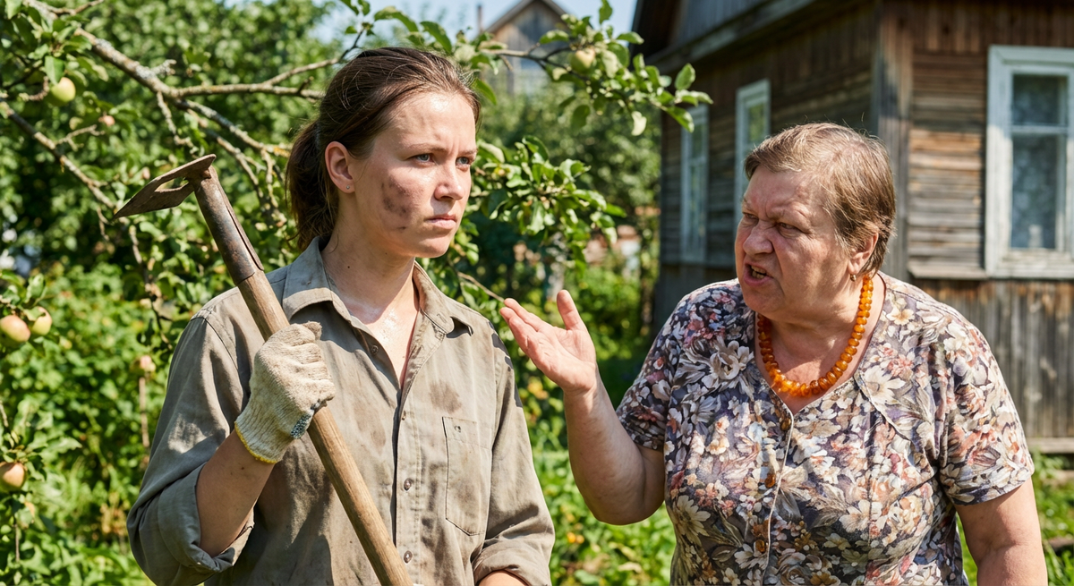Елена разогнула спину, чувствуя, как ноет поясница после двух часов прополки клубники. Солнце уже перевалило за полдень, заливая участок густым, липким зноем. Май в этом году выдался на редкость жарким, и земля на грядках сохла моментально, требуя постоянного полива и ухода. Она оперлась на тяпку, смахнула тыльной стороной ладони капельки пота со лба и внимательно посмотрела на Галину Петровну. Свекровь сидела в плетёном кресле под раскидистой яблоней, в тени, и неторопливо попивала холодный компот из вишни, который Лена сварила еще с утра. На Галине Петровне была нарядная блузка, совершенно не подходящая для дачного отдыха, и массивные бусы, которые позвякивали при каждом её движении.