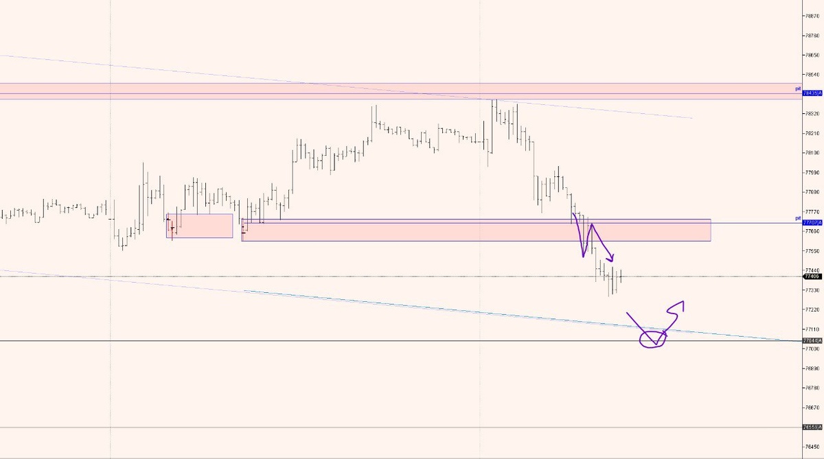 График Си. Зона отработала по обычному алгоритму. Подходим - ожидание - отбой (этот сценарий имеет высокую вероятность) . Продавили - ожидание - обратный тест (второй по вероятности сценарий), закрываем позицию и возможно отрываем противоположную. Продолжение движения. Алгоритм работы с усилием я часто напоминаю, на рынке не должно быть иллюзий гарантированных исходов, всегда есть лишь вероятности. Сейчас ожидания сделки - см. график. Не ИИР