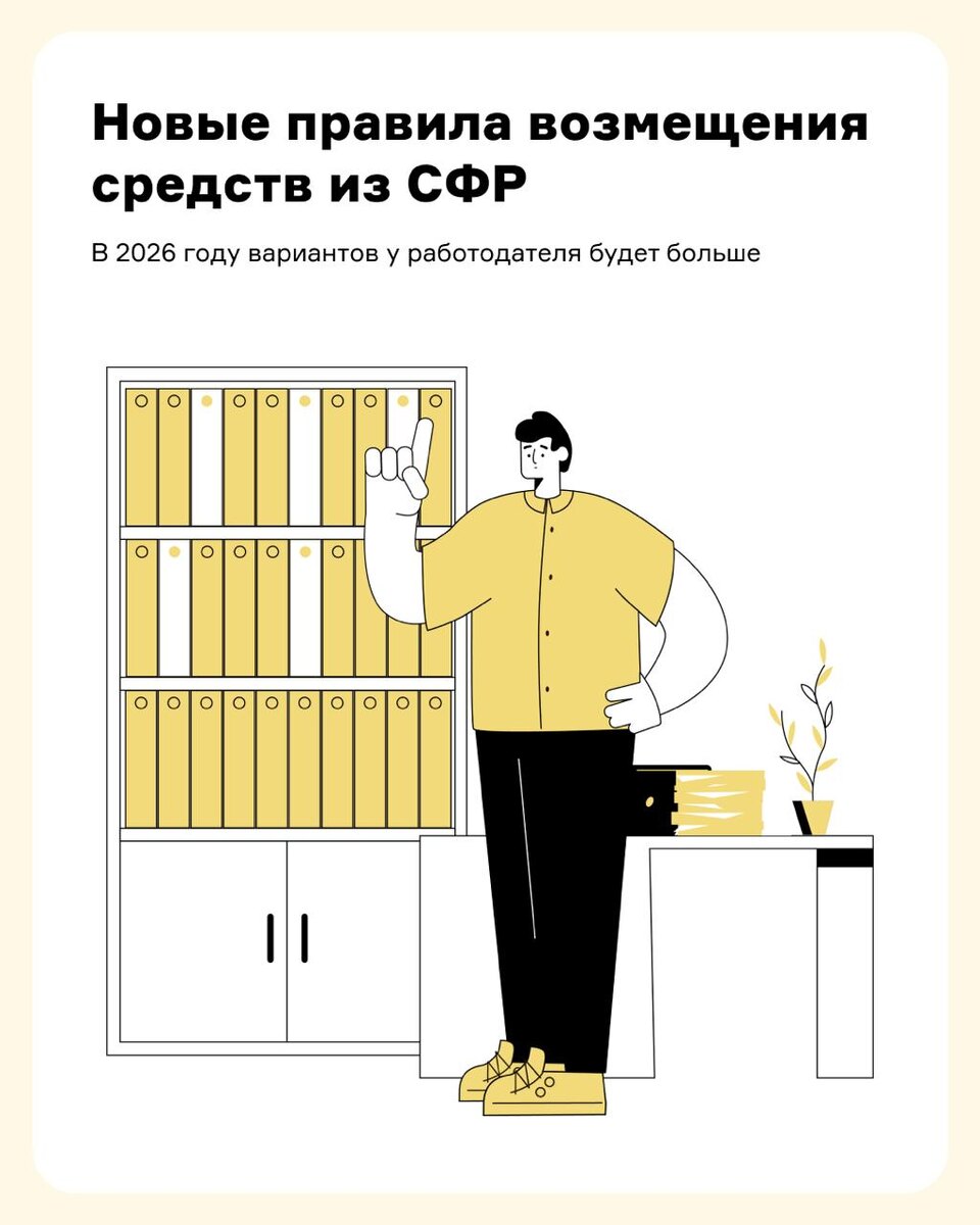 С 2026 года работодатели смогут компенсировать больше расходов на ОТ из средств СФР. Минтруд приказом № 497н расширил закрытый список для возмещения средств. Эксперты ЦОКО №1 подготовили актуальный обзор, в котором подробно объяснили: 🟡Какие затраты по охране труда СФР возместит работодателю в 2026 году 🟡На какую сумму возмещения из СФР может рассчитывать компания 🟡Как организовать возврат средств из СФР по приказу Минтруда 🟡Когда Социальный фонд России откажет в возмещении средств: примеры 👉 Возмещение расходов в 2026 году @peredelkino