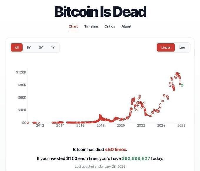 Если бы Вы просто покупали каждую смерть BTC на 100$.
