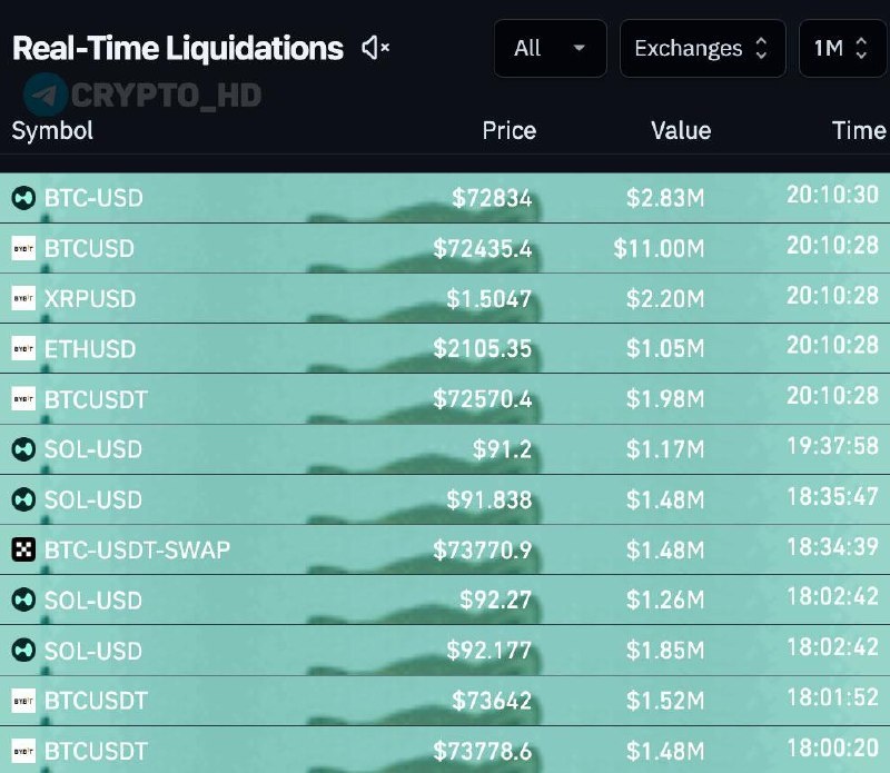 😳 Сoinglass: У кита на бирже Bybit ликвидировало LONG-позицию на $11m одним ордером (в паре BTC/USD)…