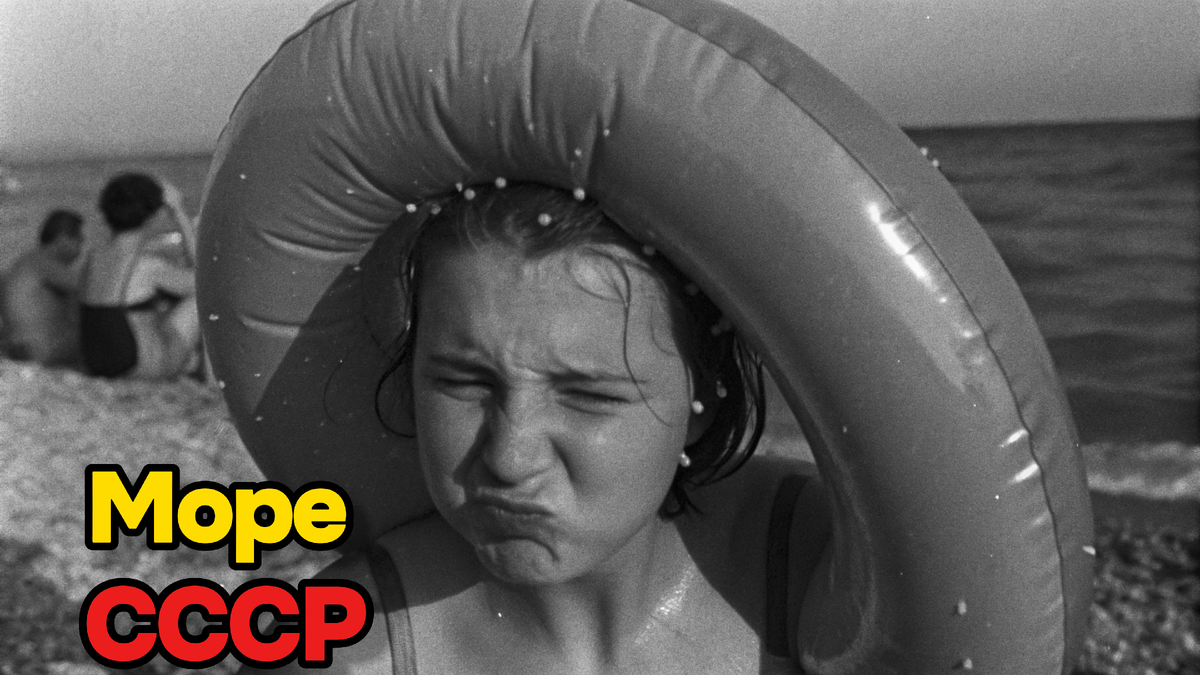 Она стоит под струей воды и смеется. По-настоящему, голосом, запрокинув голову к небу. За ней - бетонная стена с облупившейся штукатуркой, полотенце висит на гвозде. Ничего красивого ни в одной из деталей. Зато в той улыбке - всё. Это и есть пляжный душ эпохи: четыре стены, труба, холодная вода - и в этом простом ритуале что-то неуловимо радостное. Словно и не нужно больше ничего, чтобы человек почувствовал себя наконец-то счастливым.