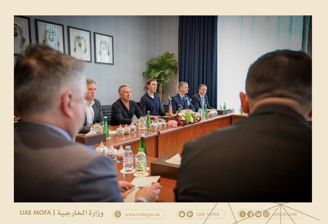 В большой политике мелочей нет, все имеет значение. Посадка сторон и одежда и даже то, что стоит на столе. Посмотрите, как одета американская делегация, нечего в голову не приходит? Делайте выводы господа. В центре — американская делегация во главе с Мачо спецпосланниками президента США Стивом Уиткоффом и главным мачо Джаредом Кушнером. Посмотрите на их лица! Кто знает тот поймет.