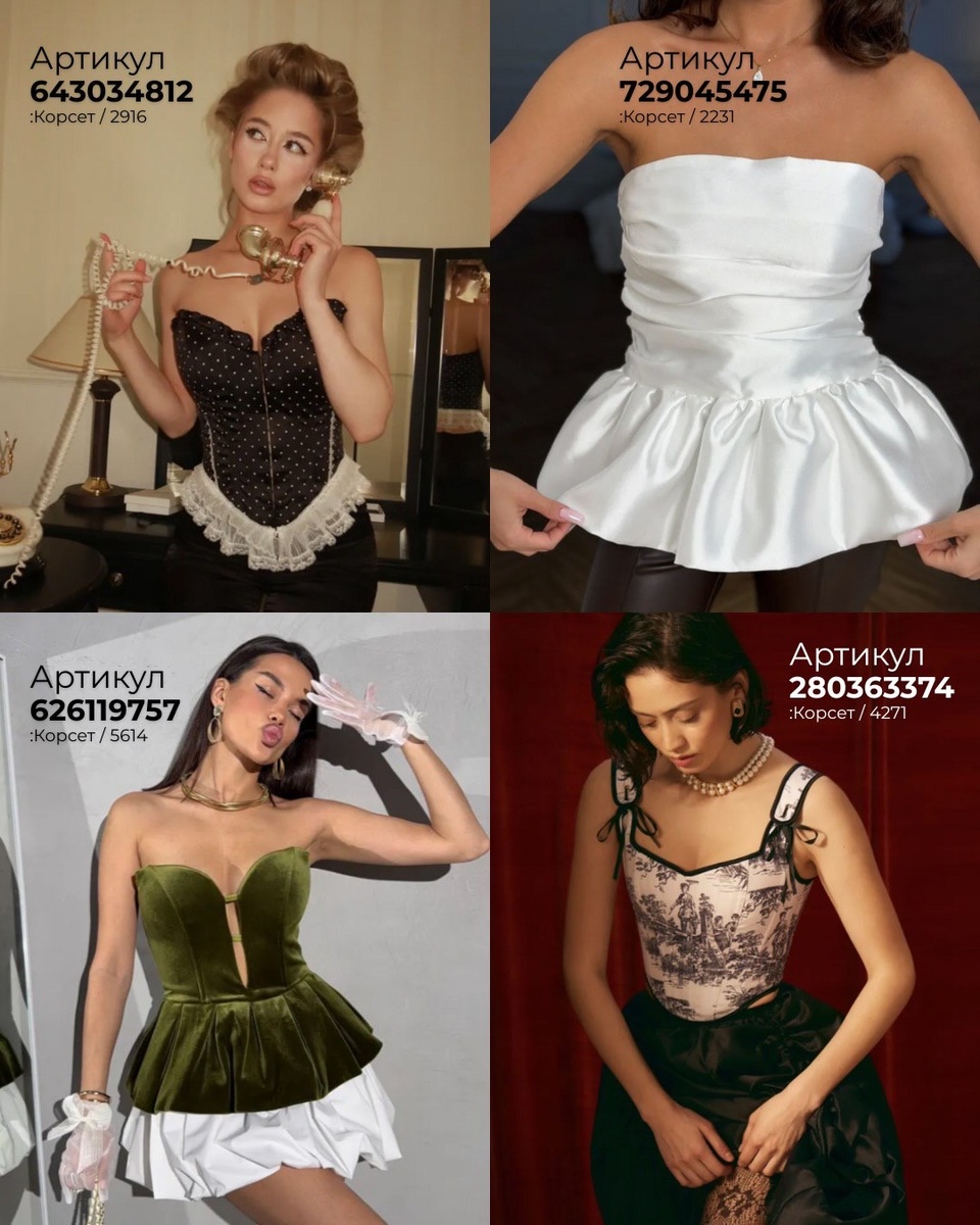 Эта подборка закрывает всё: от ретро-гламура (чёрный корсет с кружевом) до современной романтики (голубой цветочный), от вечерних решений (клатчи, серьги) до базы, которая успокаивает образ (лонгсливы). Выбирайте один главный акцент — и собирайте вокруг него чистую, уверенную стилизацию. Тогда будет тот самый эффект: «вау, как дорого выглядит».