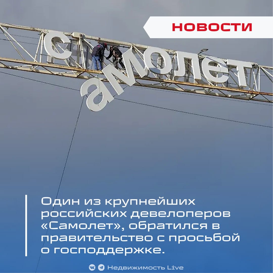 ❗️Один из крупнейших российских девелоперов «Самолет», обратился в правительство с просьбой о господдержке