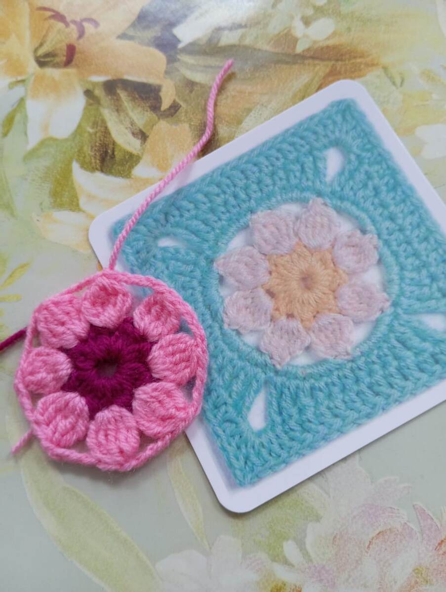 Связала один квадратик из подарка. Красивый получился.