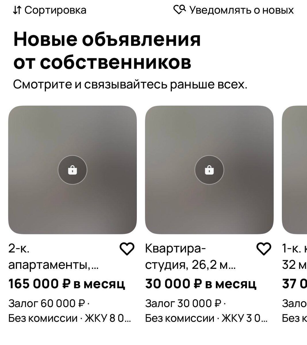 Отдельная подписка за 399 руб. в неделю, чтобы смотреть особые «секретные» объявления и видеть квартиры раньше других. Т.е. платить теперь будет не только продавец, но и потенциальный покупатель. Ждем подписку на «ультрасекретные» объявления за 799 руб. в неделю. 👍