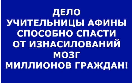 НЕСКОЛЬКО ИЗВЕСТНЫХ СМИ, НАХОДЯЩИЕСЯ РЯДОМ С ДЕЛОМ (В ПЕТЕРБУРГЕ), СООБЩИЛИ, ЧТО СЛЕДСТВИЕ ИМЕЕТ ОТКРОВЕННУЮ ПЕРЕПИСКУ АФИНЫ С УЧЕНИКАМИ О ПОЗАХ ВТРОЁМ И О ИХ МУЖСКОМ ДОСТОИНСТВЕ. Это не гарантирует её виновности либо невиновности, но достаточно нормальные СМИ Санкт-Петербурга пишут и что она не отрицала переписку, а утверждала следствию, что это просто шутливое общение со школьниками; это не гарантирует её виновности, но.. не гарантирует и её невиновности; дело точно требует дорасследования, читайте подробней в этой публикации. При этом в обществе откуда-то направляют всех быть уверенными, что учительница Афина "чиста в отношениях с учениками". Дело для этого и сделано (как и дело Ларисы Долиной, и много других резонансных и обычных дел): влияют на общественность двояко какие-то отделы, сводящие судьбы под многие дела, регулирующие доступы в СМИ и т.п.; их цель: заполнение сознаний общества, медийной и судейской среды плохими прецедентами с двойной "игрой" так, что управляют и поведением общественности и... судейскими системами в любых странах и цивилизациях в определённой либо значительной степени, в зависимости от совокупных факторов разных стран и цивилизаций, что используют преступные системы при многих сценариях событий в обществах. Примечание: Для подъёма настроения общества, но и для понимания вопроса, можно вспомнить анекдот: "Женщина: Доктор, что делать, кошка опять окотилась. Доктор: И у неё не было контактов с котами? Женщина: Точно, мы за этим следим... Вдруг заходит красивый лоснящийся огромный кот и упирается своим "достоинством" в ногу доктора. Доктор: Так вот ведь кот. Женщина: Доктор, Вы что?! как Вы могли такое подумать?! Это ведь её брат (учитель)."