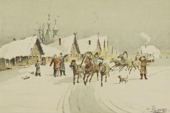 Неизвестный литограф, Николай Эллерт. Масленица в деревне. 1884. Из собрания ГМИИ им. А.С. Пушкина.