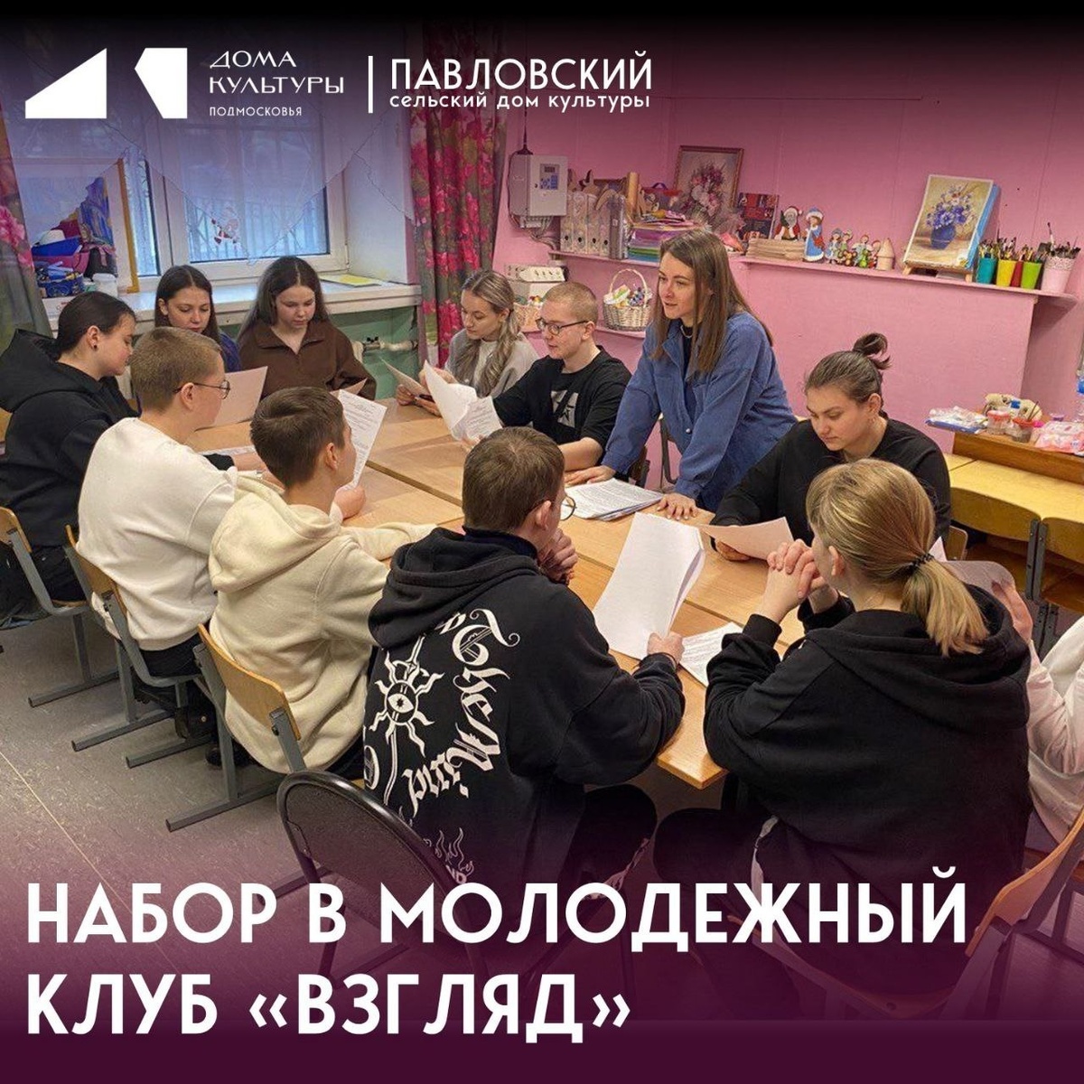 ✨ ОБЪЯВЛЕНИЕ О НАБОРЕ В МОЛОДЕЖНЫЙ КЛУБ «ВЗГЛЯД» 🙌 Приглашаем школьников от 13 лет и старше стать частью молодежного клуба. Формат: • еженедельные встречи • мастер-классы • командные проекты • участие в конкурсах • участие в общественных городских мероприятиях в качестве волонтёра 📲 Запись и вопросы по телефону 8 926 183 96-33 🏢 Павловский сельский дом культуры (СДК) 📍 г.о.Домодедово, дер.Павловское, ул.Вокзальная, д.18 ✅ Мероприятия Домодедово https://dzen.ru/id/66f10385cc4c5a16f7b5fb02 http://vk.com/domodedovo_events http://dzen.ru/domodedovo_events