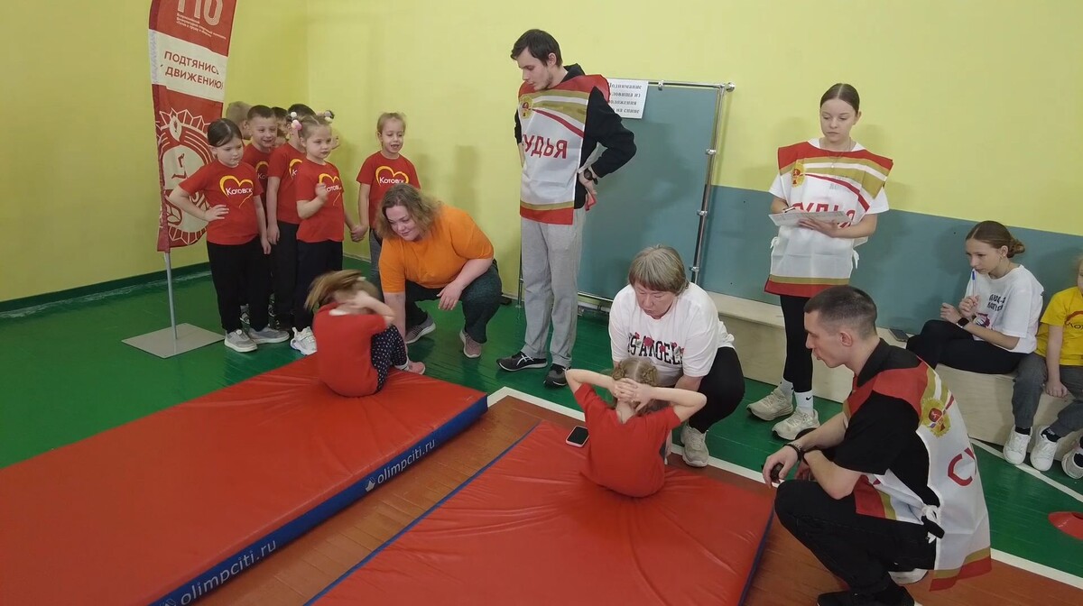 В Котовске провели муниципальный этап спортивного фестиваля ГТО. Участники – ребята семи детских садов города. Развитие всероссийского физкультурно-спортивного комплекса «ГТО» направлено на реализацию госпрограммы «Спорт России». О том, как справились дошколята с первым в своей жизни спортивным экзаменом – наш корреспондент Екатерина Краснова. Эхом разносятся по спортивному залу школы №3 звонкие голоса. Воспитанники детских садов Котовска готовы к своему первому спортивному экзамену. Для детей фестиваль «ГТОшка» — это яркое весёлое событие, участвовать в котором – ответственно и интересно. Начинается праздник спорта с яркого флешмоба - разминки. Котовск славится спортсменами. Растят их – с раннего детства. Нормы ГТО первой ступени становятся отправной точкой, которая приведёт многих ребят к высоким достижениям во взрослой жизни. Первая ступень спортивного комплекса— это возраст 6-7 лет. Дети сдают 4 норматива - бег на 10 метров, прыжок в длину с места, упражнения на гибкость и пресс.