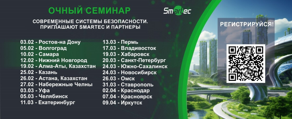 Наши партнеры, команда Smartec, приглашают Вас на семинар по оборудованию для систем безопасности. На мероприятии Вы познакомитесь как с новинками, так и с хорошо себя зарекомендовавшими решениями в области систем контроля доступа, видеонаблюдения и противопожарной автоматики.