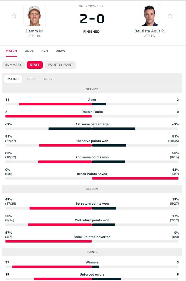 ⚡ ATP 250 Монпелье R2: Дамм вынес Баутисту Агута со счетом 6-1, 6-3 🔥