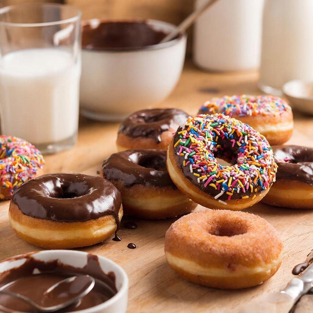 - Экспериментируйте: вместо глазури можно посыпать пончики сахарной пудрой или полить карамелью.