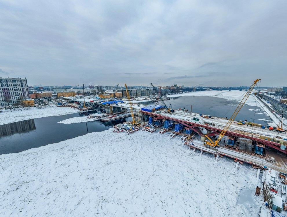 Ортотропные плиты проезжей части моста смонтированы на всех пролётах. Плиты создают основание для покрытия проезжей части, тротуаров, велодорожек и трамвайных путей. Строительство моста ведётся с опережением графика. Завершено возведение восьми из десяти опор, выполняются работы по обустройству помещений в разводных опорах. Смонтированы металлоконструкции пролётных строений в семи пролётах. Продолжается монтаж металлоконструкций пролётного строения и устройство стыков разводного пролёта. Переправа сможет пропускать суда уже в этом году: строители ведут демонтаж временного жёсткого объединения крыльев разводного пролёта и пуско-наладку гидравлических цилиндров. В 2027 планируется открыть рабочее движение по мосту. Напомним, что Большой Смоленский мост – первый за 40 лет разводной мост через Неву. Он соединит берега в районе Большого Смоленского проспекта и Октябрьской набережной. В улично-дорожную сеть города мост будет интегрирован за счет трёх крупных развязок – на проспекте Обухо