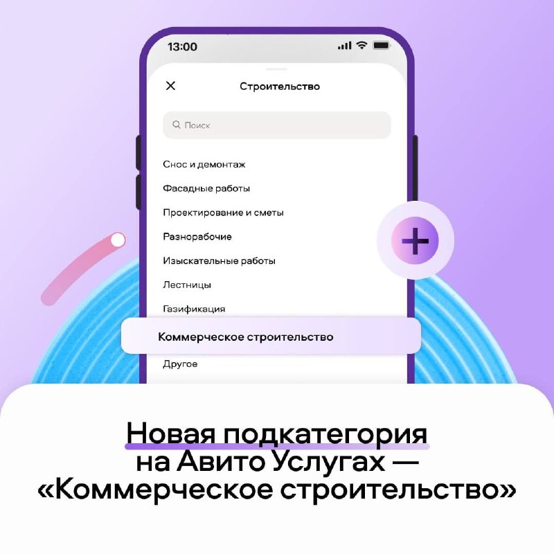 👆 На Авито появилась новая подкатегория «Коммерческое строительство». Она включает в себя услуги по строительству коммерческих, производственных, торговых и офисных зданий. Если вы занимаетесь коммерческим строительством, то самое время находить бизнес-заказчиков, разместив объявление в новой подкатегории. ❗️Объявления с услугами по строительству коммерческих объектов, которые уже были на Авито Услугах в подкатегориях «Другое», «Сварка, ковка, металлоконструкции» и «Строительство домов под ключ», переместили в «Коммерческое строительство».