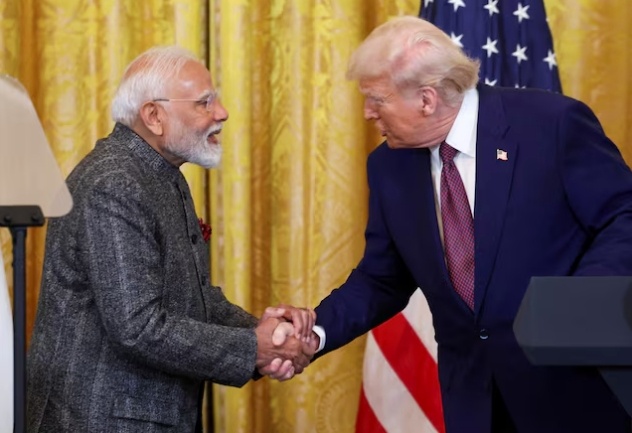 Президент США Дональд Трамп и премьер-министр Индии Нарендра Моди пожимают друг другу руки на совместной пресс-конференции в Белом доме в Вашингтоне, округ Колумбия, США, 13 февраля 2025 г. REUTERS/Kevin Lamarque