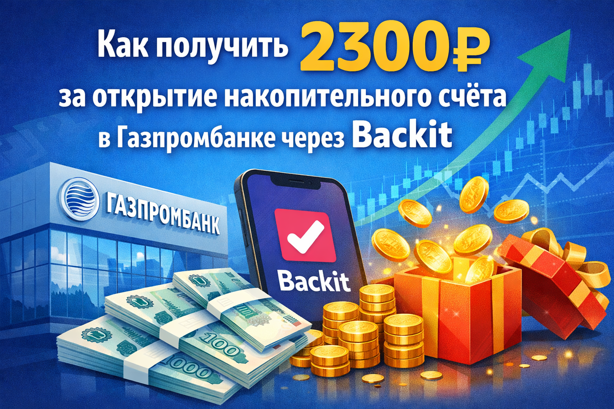 📢 Сейчас в кешбэк-сервисе «Backit» за открытие НС ГПБ и пополнение от 50к₽ можно получить кешбэк 2300₽