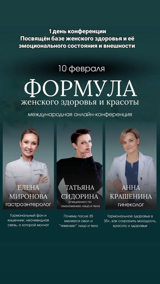 На конференцию ФОРМУЛА ЖЕНСКОГО ЗДОРОВЬЯ И КРАСОТЫ уже зарегистрировались более 230 женщин — и каждый день это число растёт. И это очень точно показывает, что сейчас происходит с женским телом после 35. Женщины больше не хотят: — экспериментов над собой — жёстких тренировок «через силу» — уколов без понимания последствий — разрозненных советов из интернета Они хотят ясности Международная онлайн-конференция «Формула женского здоровья и красоты» — это не марафон и не «исправь себя за 3 дня». Это разговор о теле и ЛИЦЕ, о здоровье как одной системе. Почему: — плывёт овал и появляется второй подбородок — отёки возвращаются, даже если «всё делаешь правильно» — тело становится тяжёлым, а энергии меньше — старые методы перестают работать И почему проблема почти никогда не в «возрасте» и не в вас. Эта конференция для женщин, которые: — устали начинать и бросать — боятся сделать себе хуже — не хотят жёстких решений — чувствуют, что телу нужен другой, более бережный подход После конфер