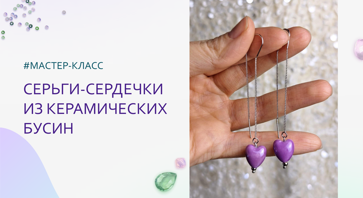 Серьги-сердечки из керамических бусин. Мастер-класс
