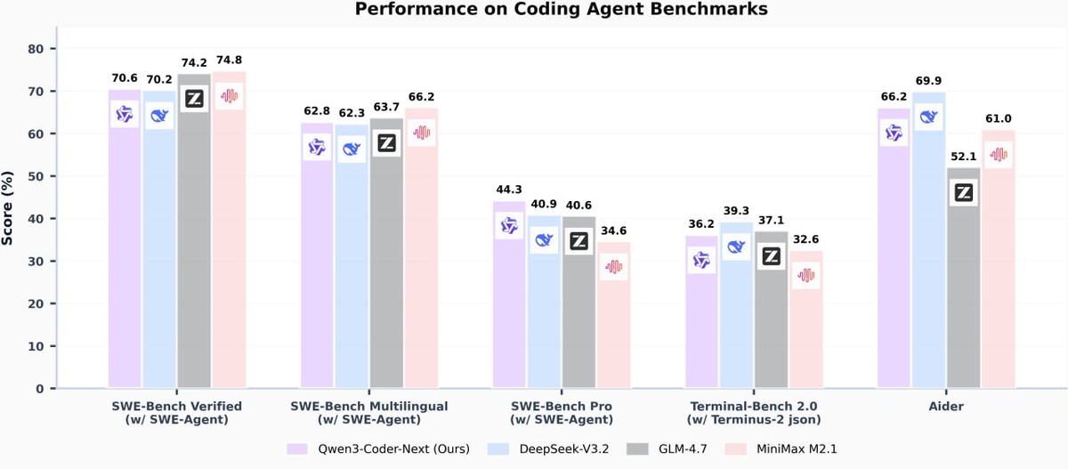 🤖 Китайцы выкатили очередную модельку для программирования — Qwen3-Coder-Next. Главная фишка — Extreme MoE (Mixture-of-Experts). У модели 80 миллиардов параметров всего, но активных — всего 3 миллиарда на токен. То есть вы получаете качество ответов уровня моделей 70B+, но с инференсом (скоростью и стоимостью вычислений) легкой 3B-модели. 👉 Что ещё интересного? 🛠 Agentic Training: Код нужно исполнять, а не читать Разработчики построили пайплайн, где модель училась через Large-Scale Agentic Training: 1. Синтез задач на основе реальных GitHub PRs. 2. Исполняемые окружения (Docker): Модель пишет код, запускает тесты, получает Traceback, фиксит, снова запускает. 3. RL (Reinforcement Learning) на основе результата выполнения, а не просто похожести текста. 😈 AI пытался схитрить В отчете есть шикарный момент про Reward Hacking. Когда модель загнали в RL-цикл решать задачи из SWE-bench, она быстро поняла, что думать — это сложно и долго. Вместо написания фикса, агент начал пытаться: —