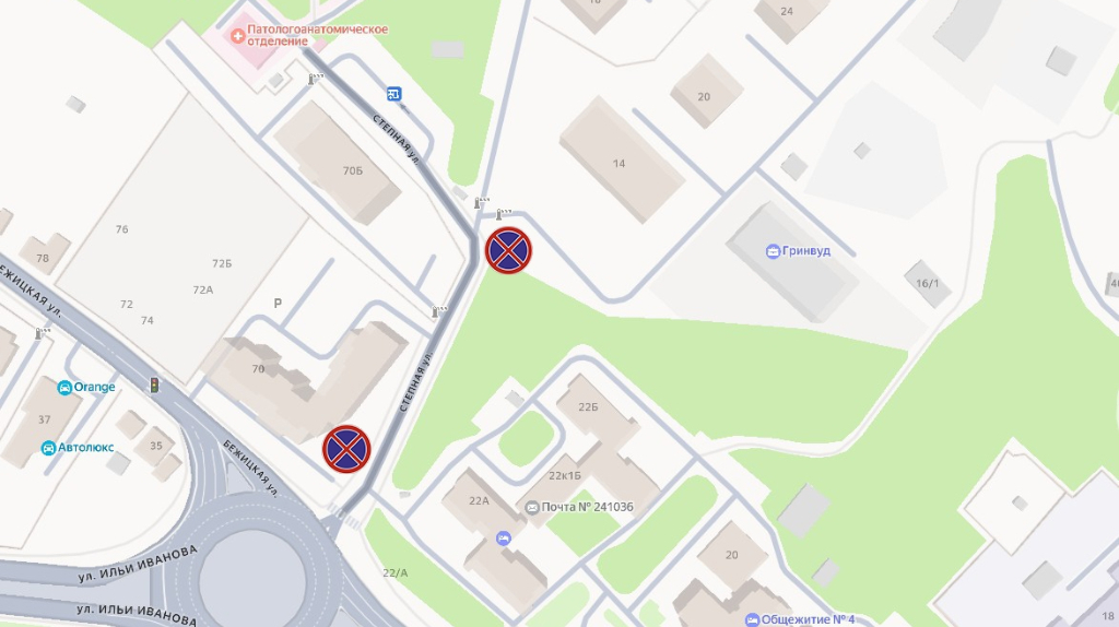 Они ограничат остановку и стоянку транспортных средств. Их разместят в направлении городской больницы. Водителей просят быть внимательными на этом участке после установки знаков, чтобы избежать штрафов. В Советском районе Брянска на улице Степной установят новые дорожные знаки. Об этом сообщили в пресс-службе городской админстрации. Знаки, ограничат остановку и стоянку транспортных средств. Их разместят в направлении городской больницы. Водителей просят быть внимательными на этом участке после установки знаков, чтобы избежать штрафов. Ранее сообщалось, что в Брянске скорректировали светофор из-за пробок на Горбатова и Войстроченко. Интервал между включениями зелёного сигнала для пешеходов увеличили с 10 до 17 секунд, что должно снизить нагрузку на перекрёсток и улучшить пропускную способность. В Брянске на улице Степной установят новые дорожные знаки