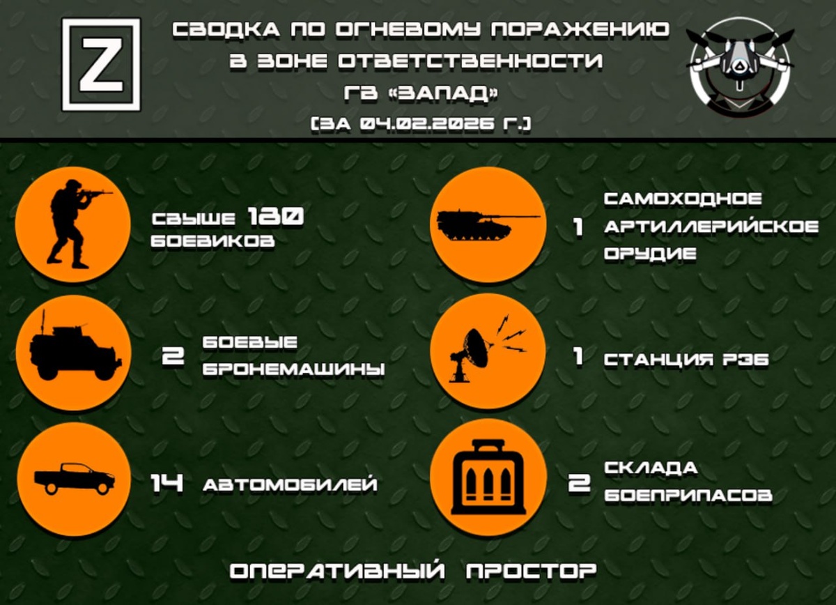 Сводка по огневому поражению в зоне ответственности ГВ «Запад» за 04.02.2026 г