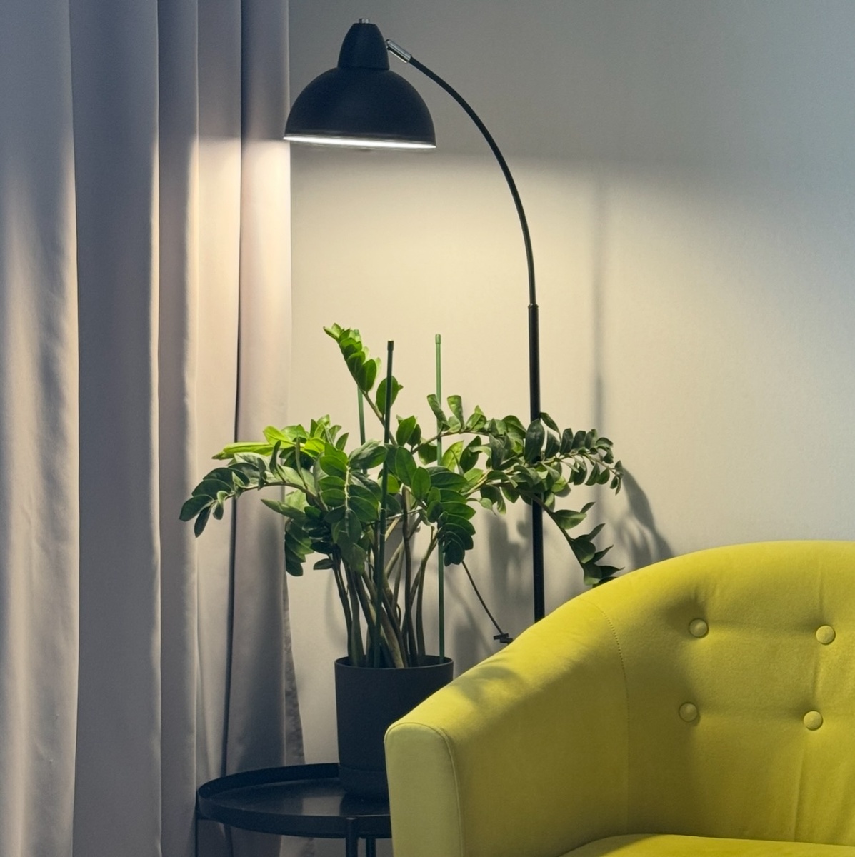 Если вы подписаны на мой тг, то точно его видели. Наконец-то я купила себе торшер, я хотела его не один год, да руки до покупки не доходили. А сподвиг меня на эту покупку мой замиокулькас, спасибо ему! В том углу, где он стоит, очень темно. Поэтому я решила две задачи одновременно — и растение светом обеспечила, и интерьер разнообразила.