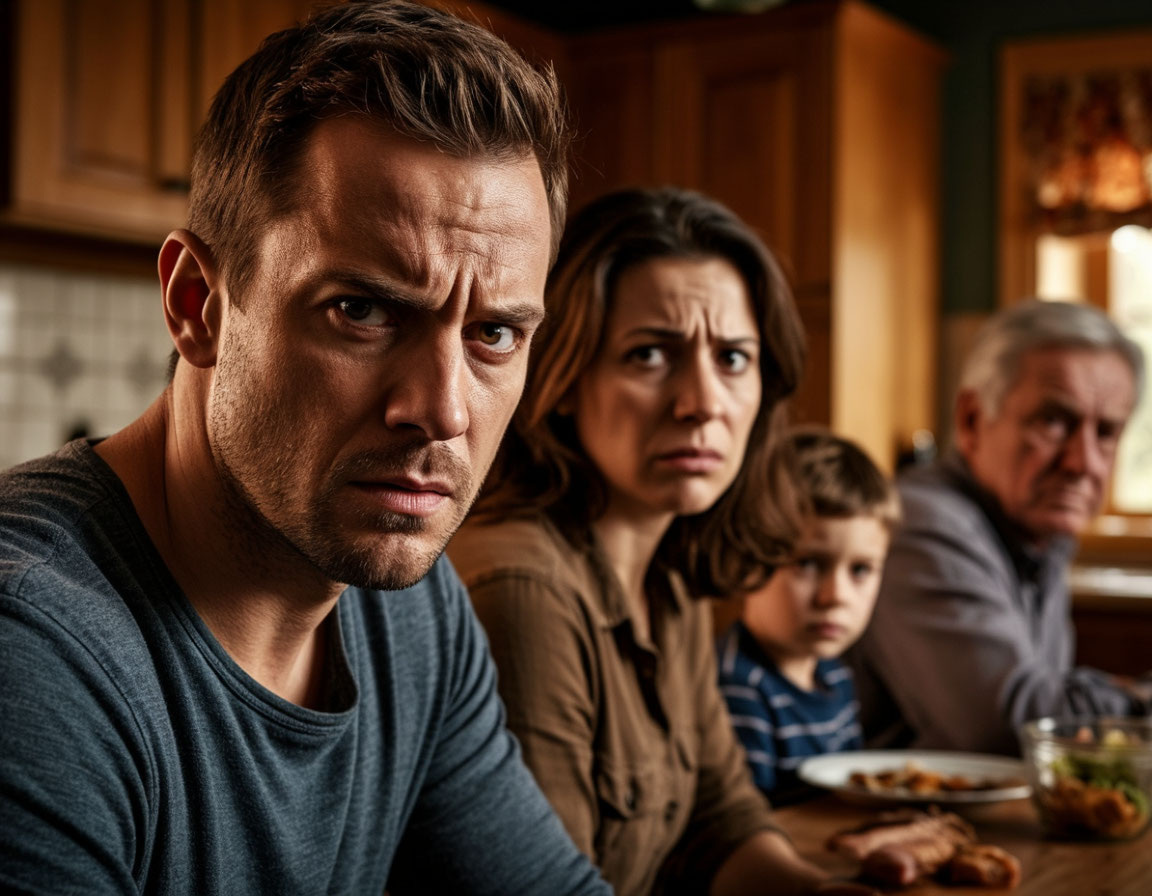 Владимир замер с вилкой в руке. Максим сидел напротив, болтая ногами под столом, и смотрел на бабушку с искренним детским недоумением. Галина Викторовна резко подняла глаза от тарелки, лицо её покрылось нездоровым румянцем.
