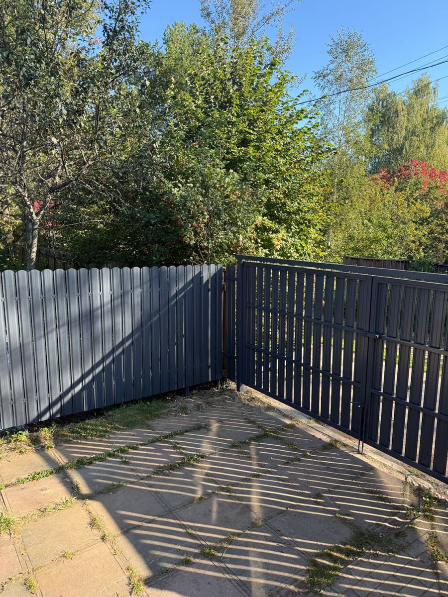 📍 Объект от 29.08.2025: комбинированный забор из евроштакетника с распашными воротами и калиткой в СНТ «Дружба», Рузский р-н