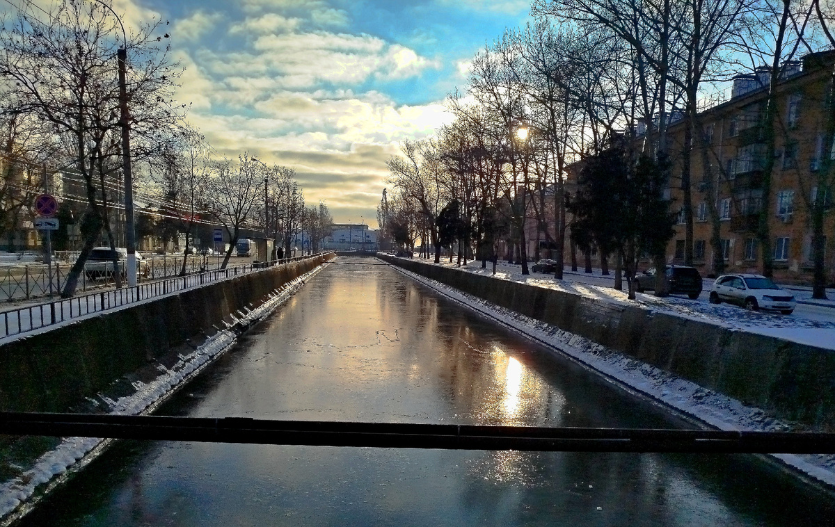 Солнечный морозный день в Керчи — это всегда немного чудо. Воздух прозрачен, как тонкое стекло, и кажется, что стоит вдохнуть глубже — и услышишь, как звенит сама тишина. Я выхожу на улицу Еременко, и город встречает меня мягким зимним светом. Речка Приморская (Мелек Чесме) застыла под тонким льдом, и только в нескольких местах вода ещё шевелится, как живое сердце под прозрачной кожей. На льду — утки и чайки, осторожные, смешные, будто в маленьких зимних ботиночках. Они переговариваются, и их голоса разлетаются над рекой, как серебристые брызги. Я делаю несколько снимков — птицы на льду всегда выглядят так, будто попали в иллюстрацию к зимней сказке. У моря воздух меняется. Он становится глубже, солонее, будто насыщен временем.