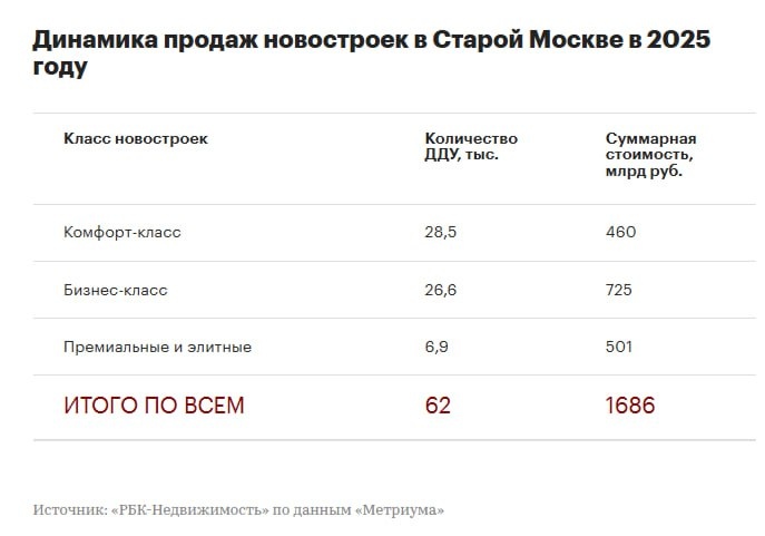 В 2025 году в новостройках Старой Москвы заключили 62 тыс. сделок почти на 1,7 трлн ₽. По количеству продаж рынок по-прежнему держится на массовом жилье, но по выручке картина оказалась обратной — основные деньги застройщикам принес дорогой сегмент. Почти половина всех ДДУ пришлась на комфорт-класс, однако именно он показал м Такой разрыв объясняется не только ценой м², но и самим продуктом. В дорогих проектах продаются более крупные лоты, выше средний чек и устойчивее спрос со стороны покупателей, менее зависящих от ипотеки.
