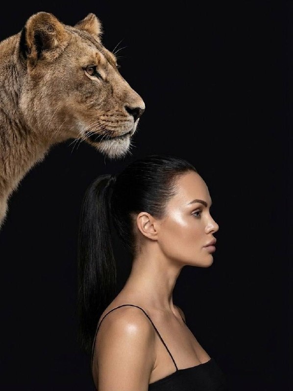 ! Модель: Banana 😎 Промт: Фотореалистичная художественная студийная композиция на глубоком черном фоне. В кадре один человек, внешность и профиль лица максимально точно взять с моего личного фото-референса, сохранить форму носа, губ, линию подбородка и взгляд. Композиция: крупная голова львицы в профиль сверху слева, смотрит вправо; ниже справа профиль человека, смотрит вправо, между ними воздух, ощущение диалога. У человека высокий хвост, волосы собраны, гладкая укладка, на лице легкий глянец, макияж спокойный, губы нейтральные, кожа с мягким сиянием. Одежда минимальная: черный верх без бретелей или тонкая черная линия по плечу, акцент на шее и ключицах. Свет драматический: мягкий боковой свет справа, тонкий контурный свет по профилям, глубокие тени, высокая детализация шерсти львицы и кожи человека. Цветокоррекция кинематографичная, без текста и водяных знаков. 💬 Создаем в боте: https://t.me/gptcyber_bot 💬 Чат подписчиков для вопросов https://t.me/ChatGptCyberbot