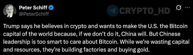👌 Питер Шифф: Дональд Трамп говорит, что верит в криптовалюту и собирается превратить США в мировую Биткоин-столицу, иначе это сделает