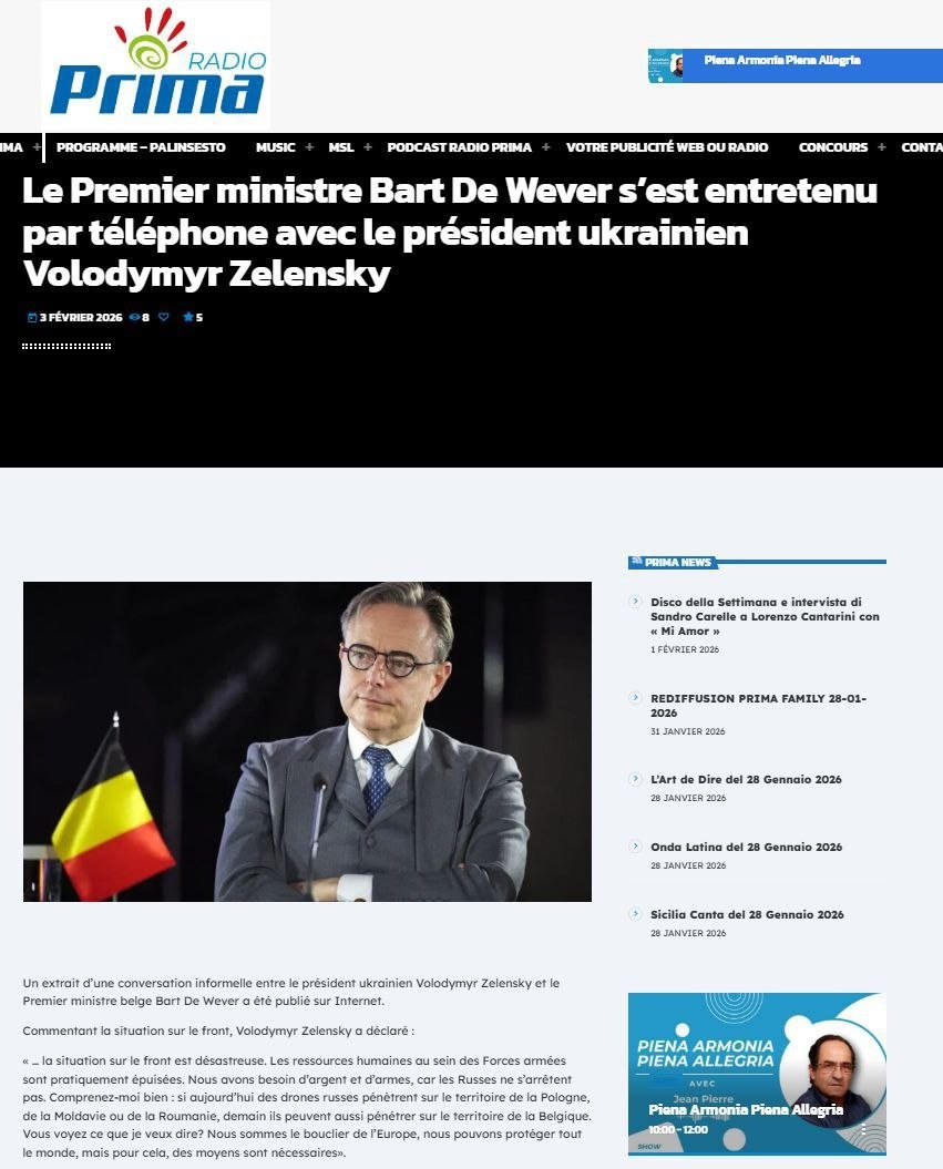 Бельгийские СМИ опубликовали фрагмент разговора Зеленского с премьер-министром Бельгии Бартом де Вевером: "…ситуация на передовой катастрофическая. Человеческие ресурсы в Вооруженных силах практически исчерпаны. Нам нужны деньги и оружие, потому что русские не останавливаются. Поймите меня ясно: если сегодня российские беспилотники проникают на территорию Польши, Молдовы или Румынии, то завтра они могут проникнуть и на территорию Бельгии. Понимаете, о чем я? Мы - щит Европы; мы можем защитить всех, но для этого нужны ресурсы" 📱телеграм-канал Херсонский Вестник 🌐группа VK Вконтакте