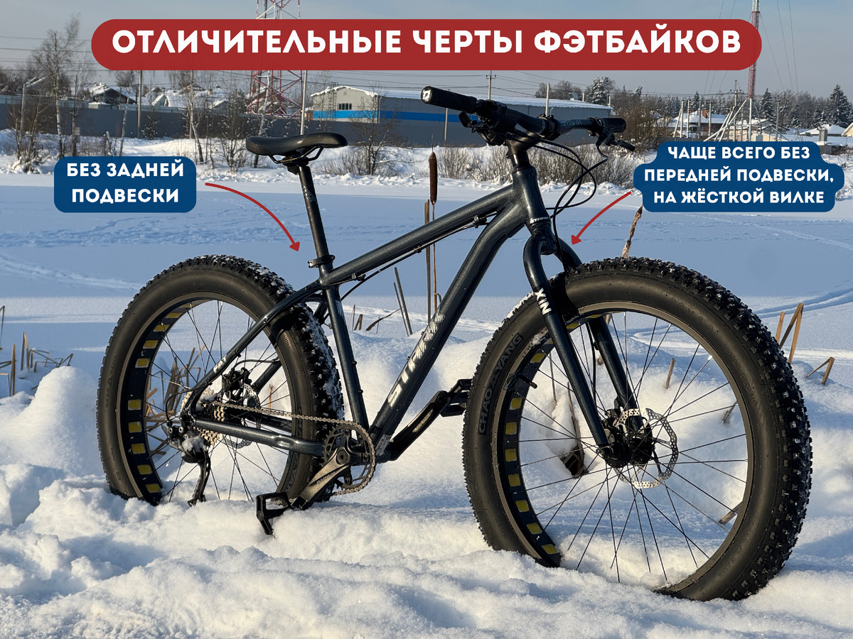 Начнём с одного из самых необычных представителей горных великов — фэтбайка! ➤ Что такое фэтбайк? Это горный велосипед, созданный для максимальной проходимости. Его ключевые отличия: