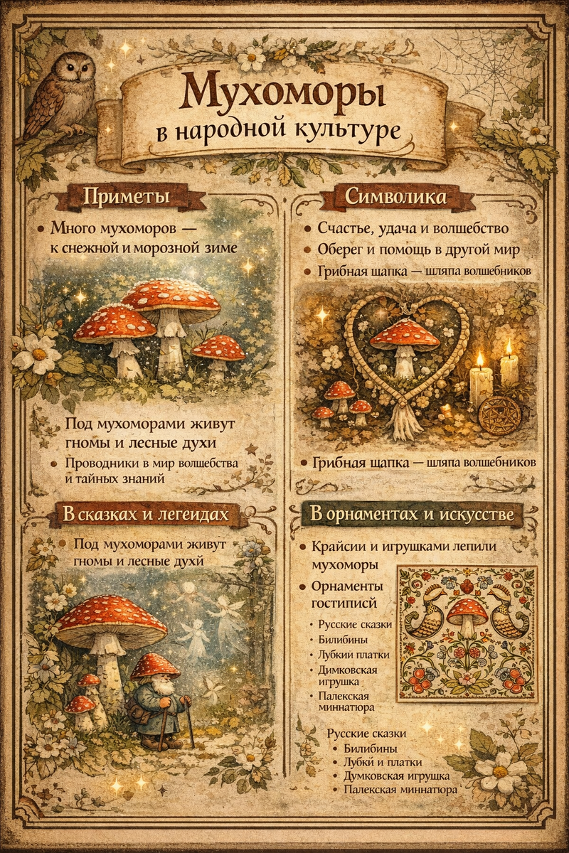 Мухомор в народной культуре — персонаж яркий, противоречивый и почти сказочный 🍄