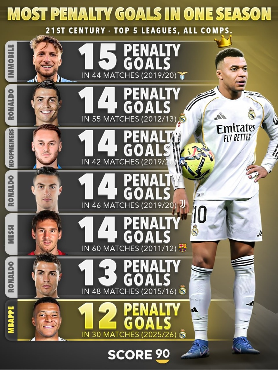 Больше всего голов с пенальти за один сезон в 21 веке на клубном уровне🇫🇷