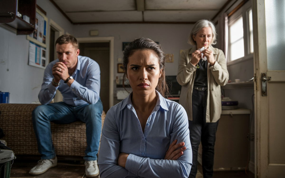 — И не надо делать вид, будто всё в порядке! — Снежана резко поставила тарелку на стол. Котлета поехала в сторону, оставив полоску масла на скатерти. — Твоя сестра считает меня плохой хозяйкой? Так пусть не приходит жрать мои котлеты! — Снеж... ну хватит, — тихо сказал Виктор, муж, не глядя. Он ковырял вилкой салат. — Хватит? Да я молчала три года, Вить! Три года это "ой, у вас пыль на подоконнике", "а борщ пересолён", "я бы детям так не подавала". Не приходит больше — и точка. Соседний стул скрипнул, когда Снежана села. Гул стиральной машины из ванной, промозглый холод из щели под окном, запах подгоревших котлет — всё раздражало одновременно. — Снеж, — Витя поднял взгляд устало. — Она просто… ну, ты же знаешь, язык у неё такой. — А руки у неё какие? Десять лет живём — хоть раз помогла? Только рот открывает. А ты сидишь. Молча. Как будто тебя это не касается. Он замолчал. Из соседней комнаты раздался шум телевизора — ведущая бодро говорила о скидках к Новому году. На экране блестели ги